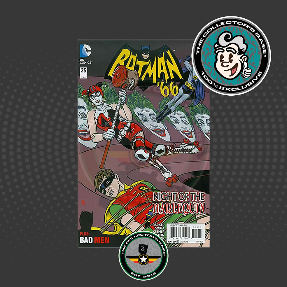 Un comic que presenta la primera aparición de la villana Harley Quinn adaptada en el universo de Batman '66. El tan esperado encuentro entre Harley y el Joker del inmortal Cesar Romero se da en esta increíble edición de colección muy difícil de encontrar. Entra al mundo retro de Batman '66 mientras el encapotado se enfrenta al Arlequín en una batalla de ingenio, humor y acción dinámica de principio a fin.