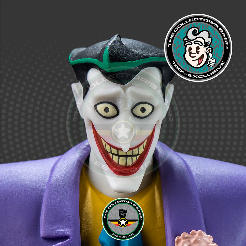 Este fabuloso pack de colección muestra al príncipe payaso del crimen en todo su esplendor e incluye las siguientes piezas: