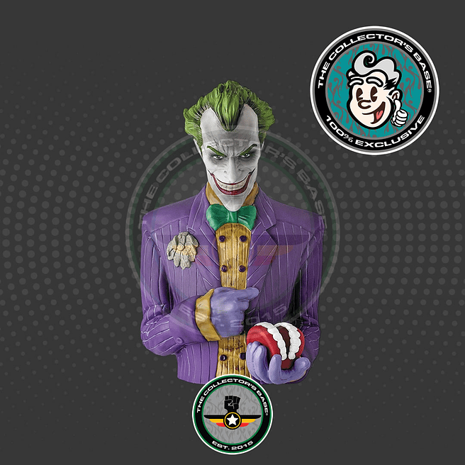- Un personaje icónico: La figura muestra a The Joker, el príncipe payaso del crimen, sosteniendo una dentadura de broma con sonrisa malévola.
