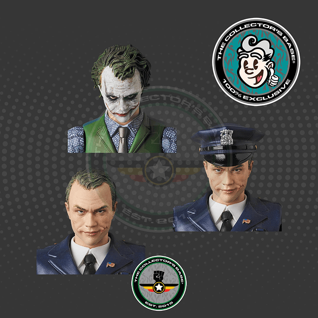 De MEDICOM. ¡The Joker, disfrazado de un oficial de policía de Gotham City tal como se le ve en el film The Dark Knight (2008), regresa a la línea de figuras de acción de MEDICOM Maxfex! Mide aproximadamente 16 centímetros de alto y es completamente articulable para causar la máxima destrucción. Una figura increíble, que viene con cabezas intercambiables, rifle, gorro y también brazos intercambiables. ¡No dejes de agregar este villano definitivo de Batman a tu colección ahora!.