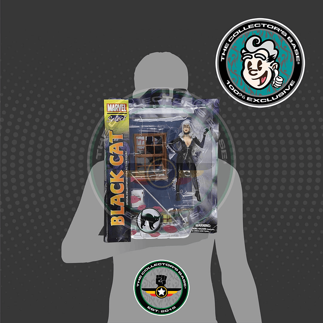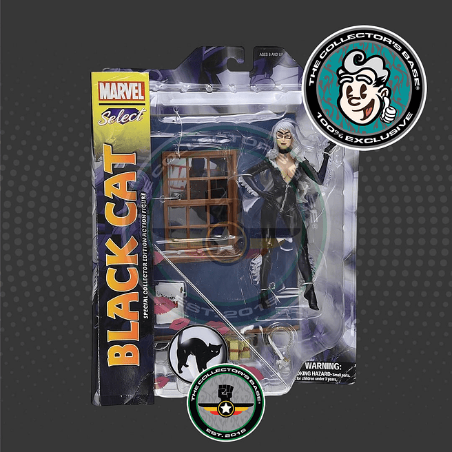 Esculpido por Steve Kewis y recientemente resucitado a los cómics en una nueva serie limitada del escritor Kevin Smith y el artista Terry Dodson. Black Cat aparece en todas sus galas felinas, junto con una detallada base de diorama con caja fuerte de apertura (llena de botín) y una figura de Spider-Man de tamaño completo (removible, no articulada) que se aferra a la pared.