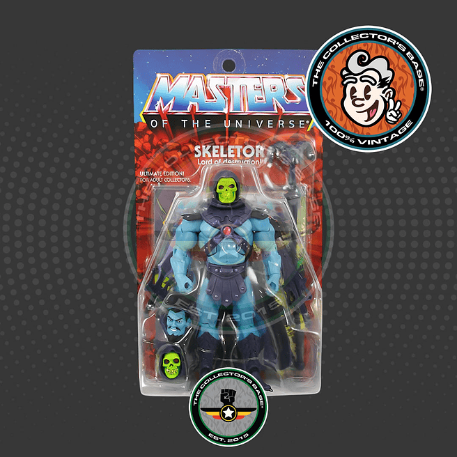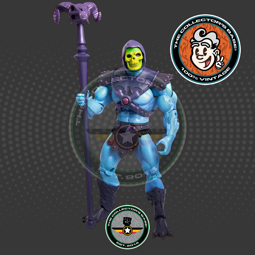 Skeletor, el malvado señor de la destrucción, en una figura de lujo, con gran articulación y completamente posable que incluye una fabulosa serie de accesorios y partes intercambiables. Cada Skeletor es super detallado, esculpido en semejanza a su look en la popular serie de TV Masters of The Universe, y empaque de lujo con arte de las figuras originales de la clásica serie los años 80s. Un artículo muy codiciado por coleccionistas y difícil de encontrar.