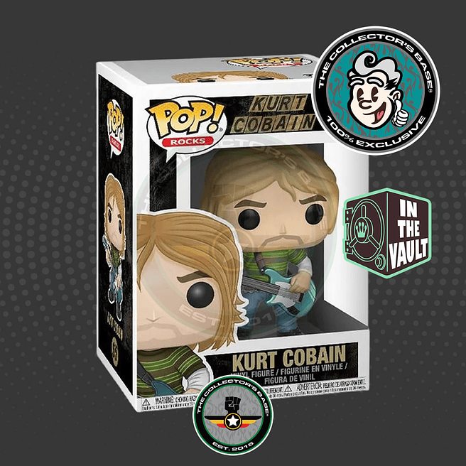 - Diseño detallado: Muestra a Cobain de manera magnífica, con su característica camiseta verde a rayas, jeans y guitarra en mano, en el ya característico estilo Funko Pop!.