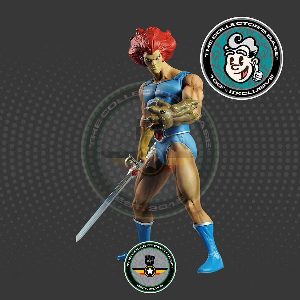 Directamente del Tercer Planeta viene el líder de los ThunderCats, Lion-O. Esta figura de mega escala mide más de 35 centímetros de alto desde la parte superior de su cabeza hasta las plantas de sus botas Thunderianas. Una versión de lujo, que viene con 2 cabezas intercambiables: una de boca rugiente para la batalla y una cara seria cuando planea su siguiente choque con Mumm-Ra, 2 Sword of Omens y la icónica Claw Shield (Garra Felina). Con 7 puntos de articulación, esta mega figura está cuidadosamente detallada, capturando a la perfección no solo el aspecto icónico de Lion-O como apareció en la serie de televisión clásica, sino la esencia del héroe cuando orgullosamente levanta la mística Sword Of Omens hacia los cielos diciendo: "Thundercats, Ho!"
